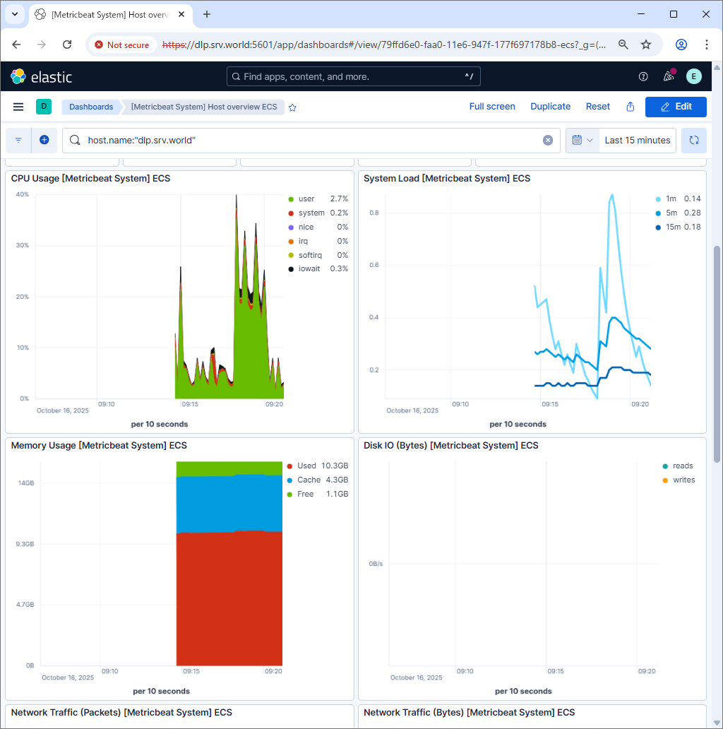 vi /etc/metricbeat/metricbeat.yml # line 67 : if use Kibana, uncomment and specify output host # if SSL is enabled on Kibana, hostname should be the same with the hostname in certs # [username] and [password] is the admin user's one # if using self-signed certificate, specify [ssl.verification_mode: none] setup.kibana: ..... host: "https://dlp.srv.world:5601" protocol: "https" username: "elastic" password: "password" ssl.enabled: true ssl.verification_mode: none # line 99 : specify output of Elasticsearch # [username] and [password] is the admin user's one # [ssl.certificate_authorities] is the cacert generated by Elasticsearch installation output.elasticsearch: # Array of hosts to connect to. hosts: ["https://dlp.srv.world:9200"] protocol: "https" username: "elastic" password: "password" ssl.certificate_authorities: "/etc/elasticsearch/certs/http_ca.crt" ..... .....