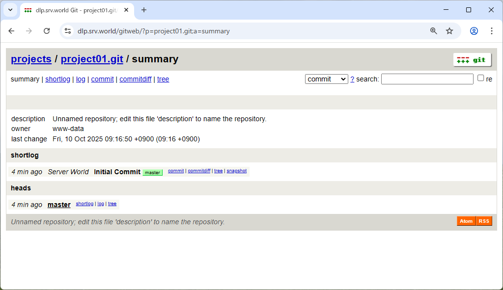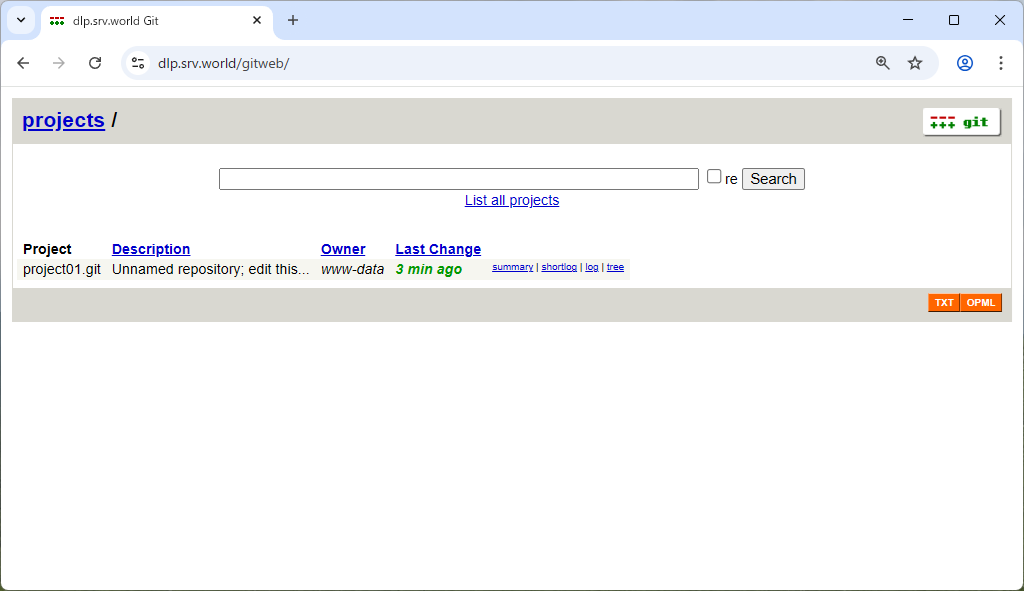 | [3] | Access to [(Server's Hostname or IP address/gitweb/)] on Web browser, then you can see repositories. |
