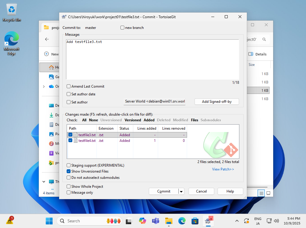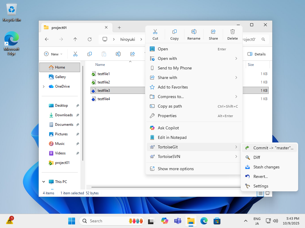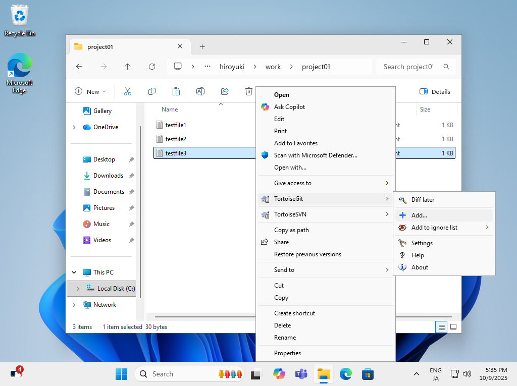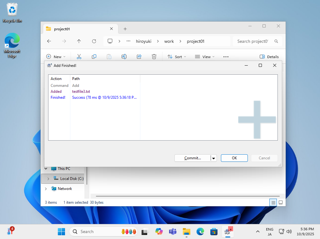 | [4] | After running [Add], right-click the target file and select [Git Commit]. |