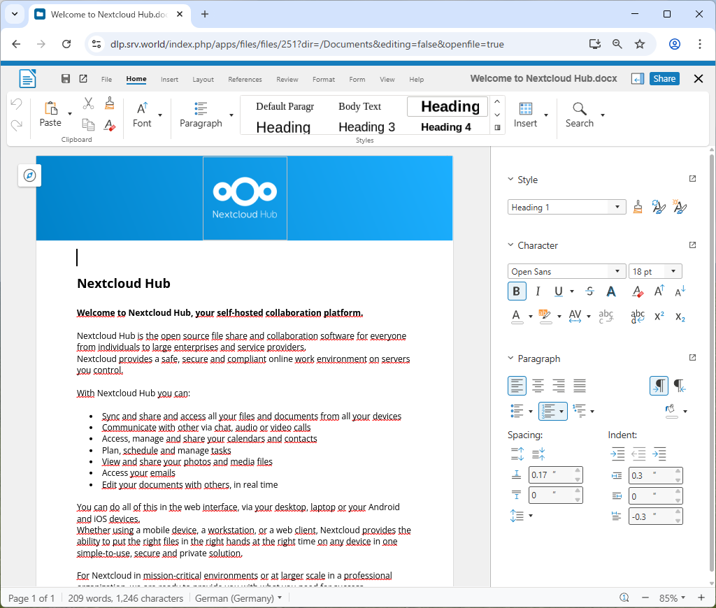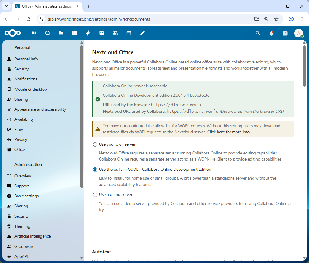 | [1] | On NextCloud, [Collabora Online] is the Office Apps like follows. |