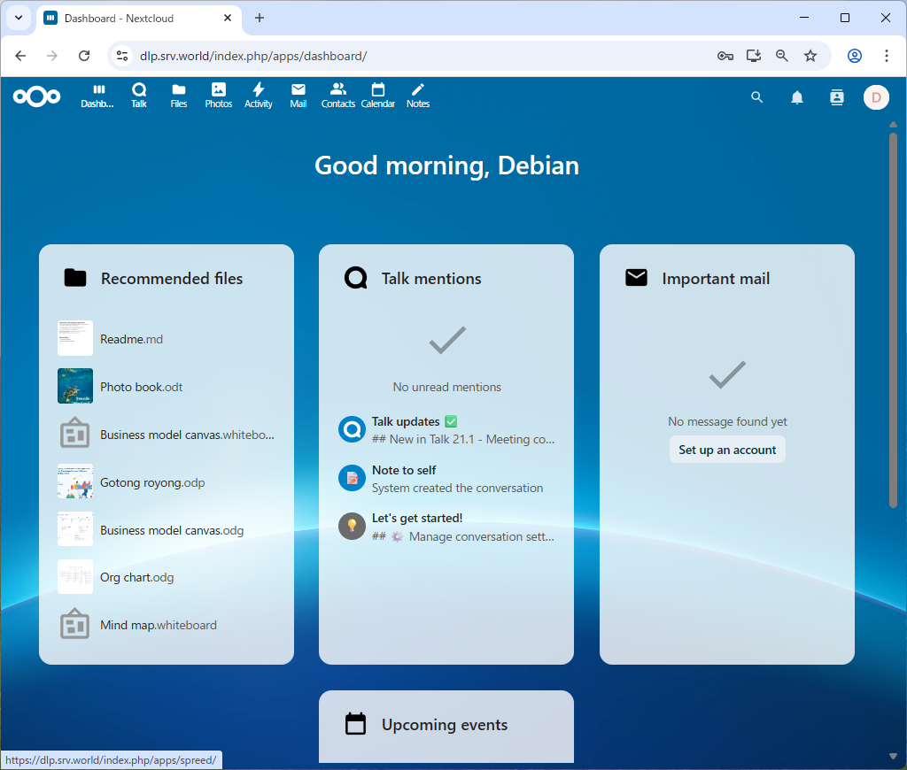 | [1] | Login to NextCloud Web with your own account and Click [Talk] icon on upper menu. |