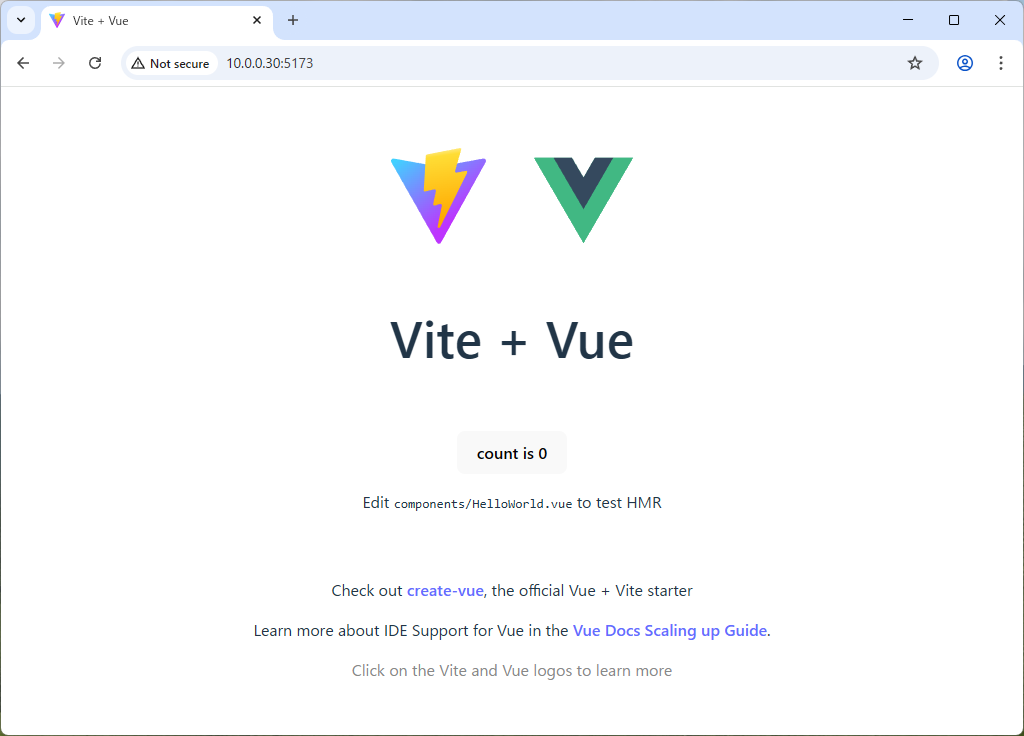 debian@dlp:~$ npm create vite@latest testproject2 -- --template vue Need to install the following packages: create-vite@7.1.1 Ok to proceed? (y) > npx > create-vite testproject2 --template vue Scaffolding project in /home/debian/testproject2... Done. Now run: cd testproject2 npm install npm run devdebian@dlp:~$ cd testproject2 debian@dlp:~/testproject2$ npm install added 34 packages, and audited 35 packages in 7s 6 packages are looking for funding run `npm fund` for details found 0 vulnerabilitiesdebian@dlp:~/testproject2$ npm run dev > testproject2@0.0.0 dev > vite VITE v7.1.5 ready in 271 ms → Local: http://localhost:5173/ → Network: use --host to expose → press h + enter to show help # if you like to access to the app from remote hosts, add [--host] option debian@dlp:~/testproject2$ vi package.json