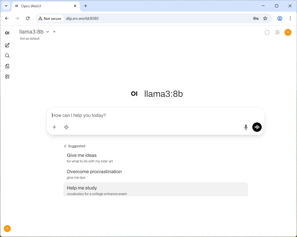 Install Open WebUI which allows you to run LLM on Web UI. Open WebUI can be easily installed with pip3, but as of September 2025, the default version of Debian 13, Python 3.13, and related modules do not all support the versions required by Open WebUI. Therefore, in this example, we will start it in a container. |