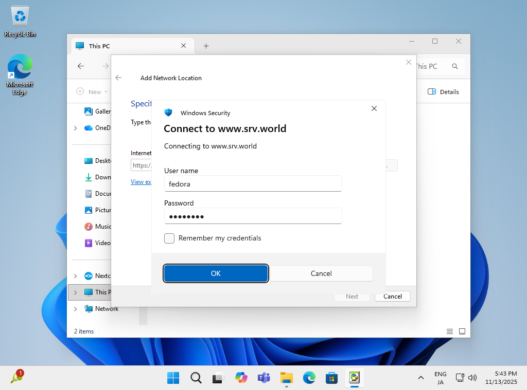 Configure WebDAV client on client computer. This example is on Windows 11. Open [PC] and Click [Add a network location] icon on the upper-menu. |