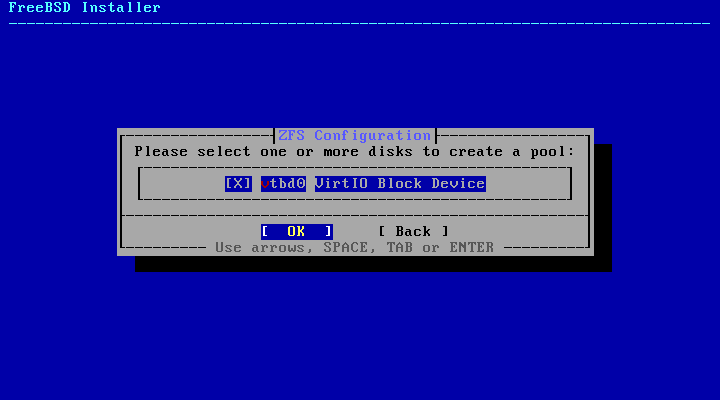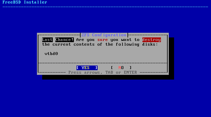 | [11] | If you selected ZFS in [8], you will be prompted to select the disk to which the root partition will be written. Even if you selected UFS, you will be prompted to make a similar selection. |