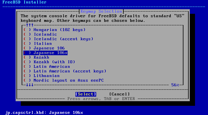 | [3] | Ths is the Keyboard map setting. Press the [Space] key to select the keyboard map for your language. |