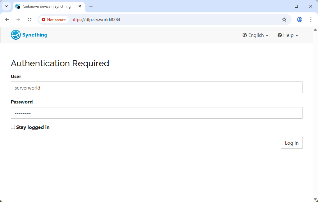 | [3] | On any client computer, go to the configured address of one of your Syncthing hosts and log in with the admin user you configured. |