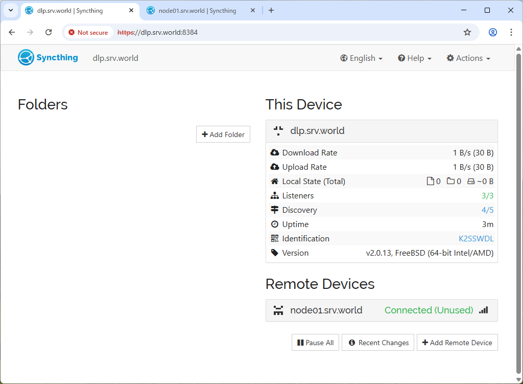 | [2] | Configure Syncthing on all hosts. |