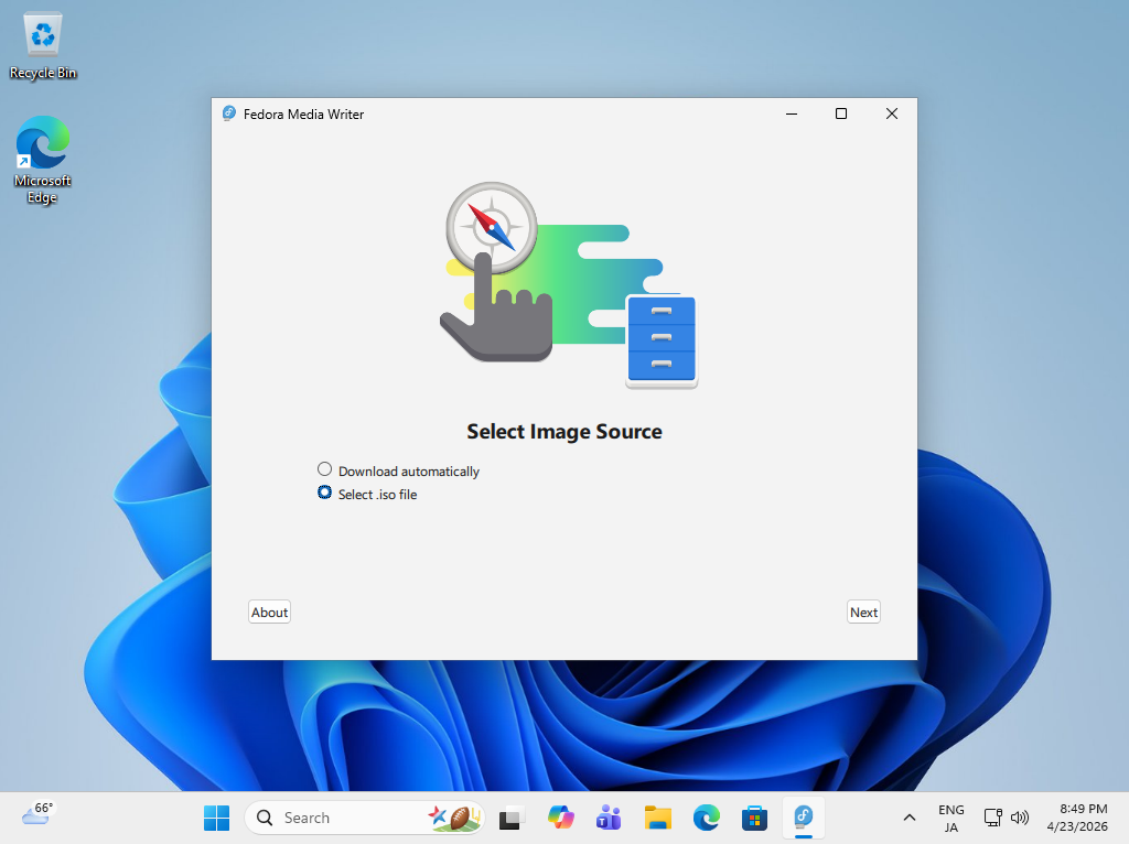 Download and install [Fedora Media Writer] from the following site. |