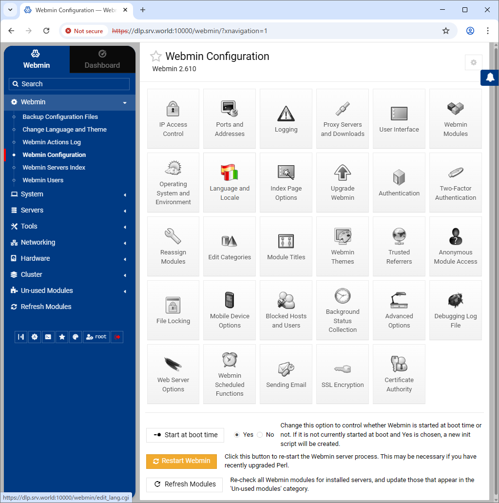 | [2] | Install Webmin. Make sure the latest version and install it. ⇒ http://download.webmin.com/download/yum/ |
