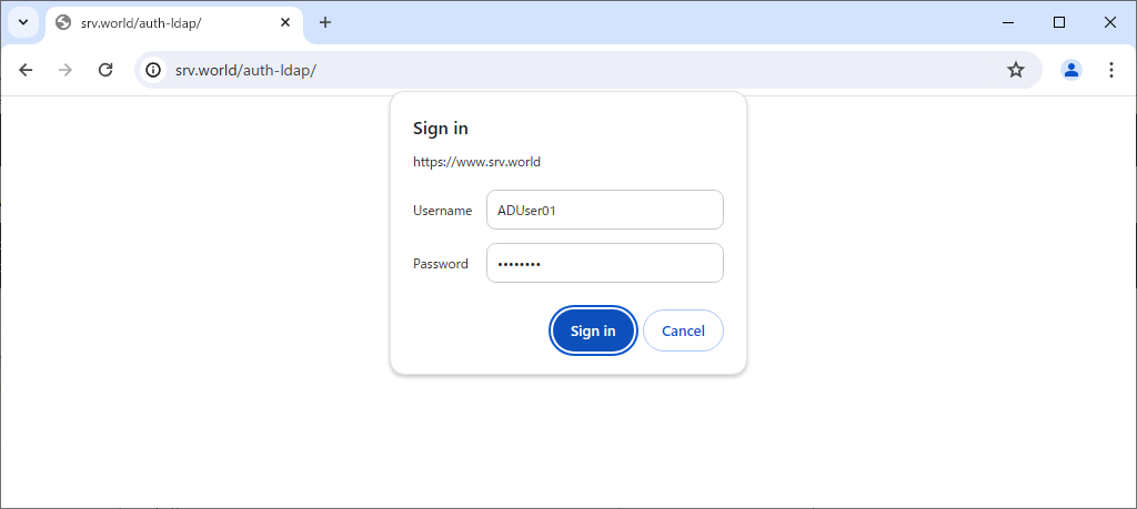 AuthLDAPURL "ldap://fd3s.srv.world:389/ou=LDAPUsers,dc=srv,dc=world?sAMAccountName?sub?(objectClass=*)"