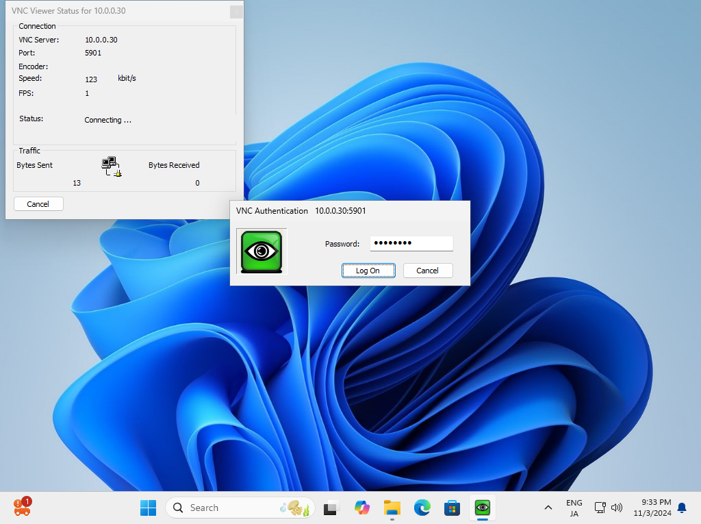 | [6] | प्रमाणीकरण के लिए इनपुट के लिए VNC पासवर्ड आवश्यक है। |
