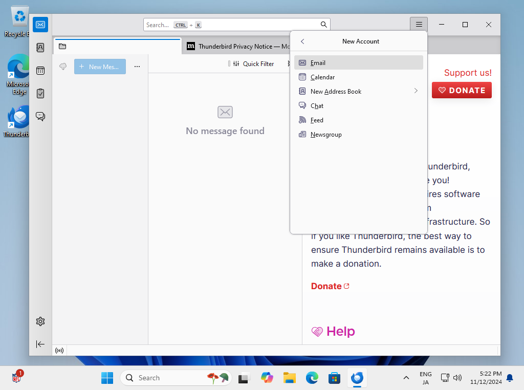 | [1] | Thunderbird चलाएँ और [नया खाता] - [ईमेल] पर क्लिक करें। |