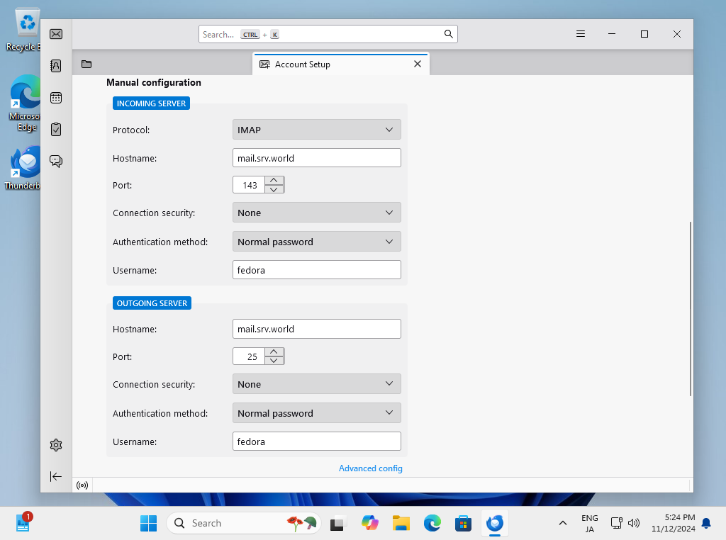 अपने मेल क्लाइंट को अपने पीसी पर कॉन्फ़िगर करें। यह उदाहरण Mozilla Thunderbird के साथ दिखता है। |