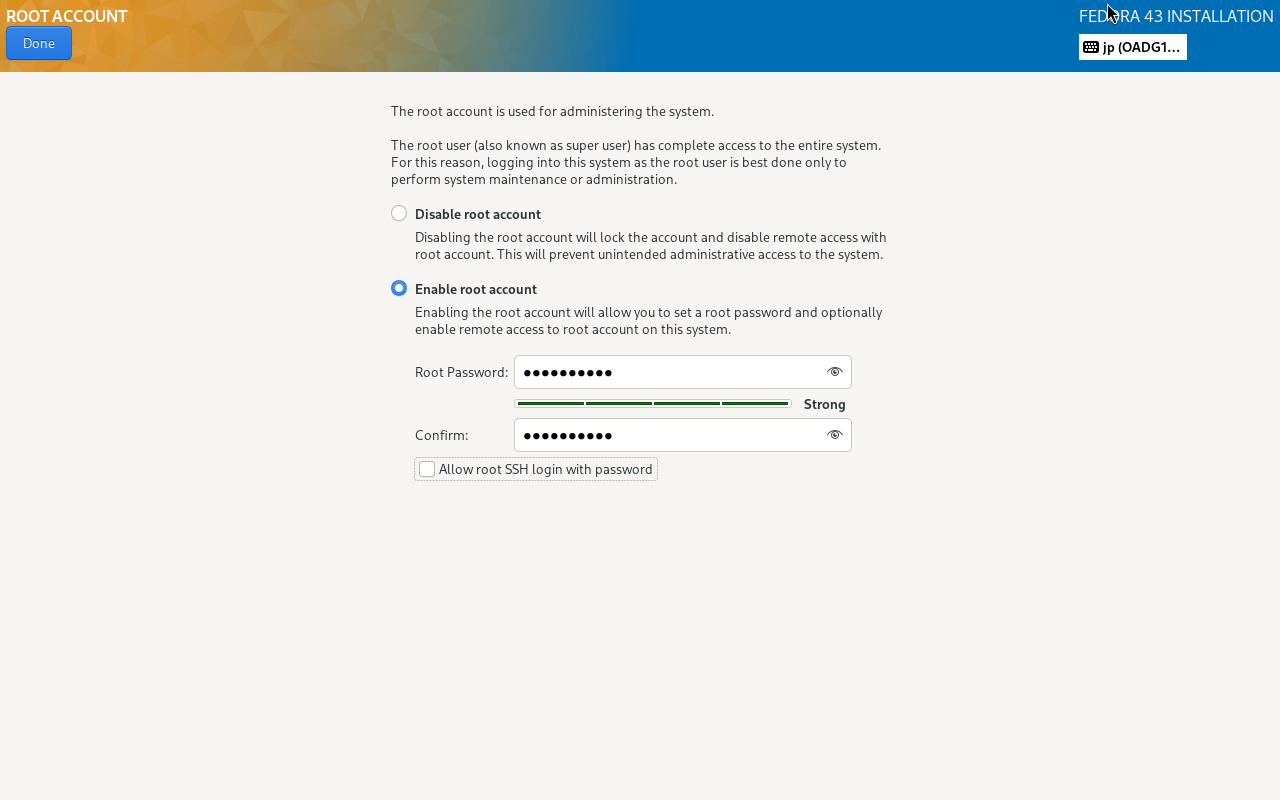 | [11] | [3] जैसे डिफ़ॉल्ट इंस्टॉलेशन सारांश अनुभाग पर वापस जाएं, इसके बाद, [USER SETTINGS] श्रेणी के अंतर्गत [रूट पासवर्ड] आइकन पर क्लिक करें। यदि आप रूट उपयोगकर्ता खाता सक्षम करते हैं तो यहां रूट खाता पासवर्ड सेट करें। |