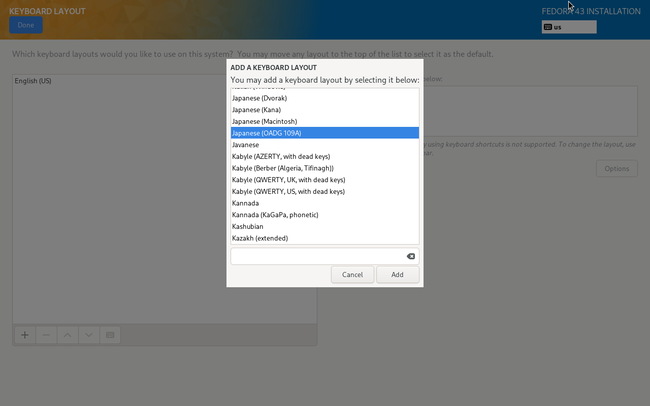 | [5] | सूची में अपने कीबोर्ड का उपयोग करने का प्रकार चुनें और [जोड़ें] बटन पर क्लिक करें। |