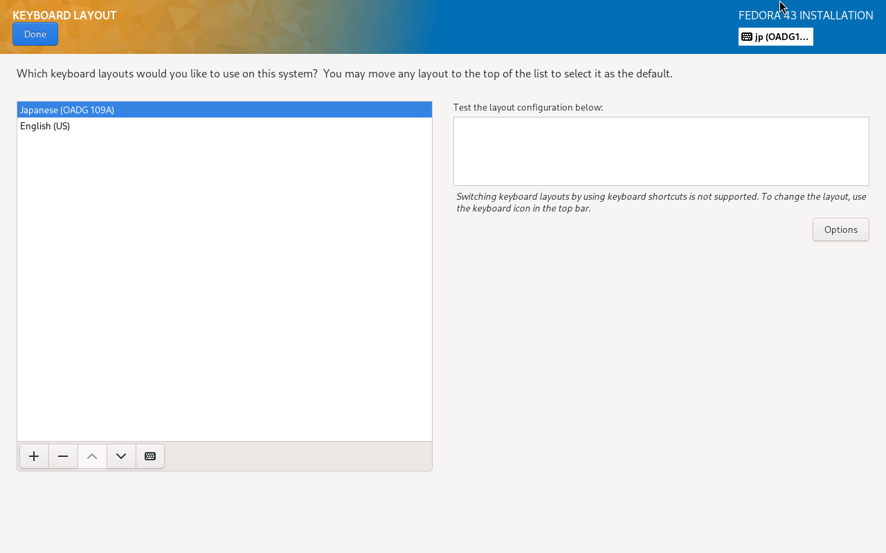 | [6] | कीबोर्ड लेआउट जोड़ने के बाद, अपने कीबोर्ड को पहली प्राथमिकता के लिए शीर्ष पर भेजें और समाप्त करने के लिए ऊपर बाईं ओर [संपन्न] बटन पर क्लिक करें। |