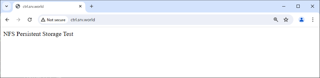 root@ctrl:~# kubectl apply -f nginx-nfs.yml deployment.apps/nginx-nfs created kubectl get pods -o wide NAME READY STATUS RESTARTS AGE IP NODE NOMINATED NODE READINESS GATES nginx-nfs-75cd8b4bb5-7b6qw 1/1 Running 0 2m26s 192.168.40.197 node01.srv.world <none> <none> nginx-nfs-75cd8b4bb5-7gp7d 1/1 Running 0 2m26s 192.168.241.131 node02.srv.world <none> <none> nginx-nfs-75cd8b4bb5-zqgsh 1/1 Running 0 2m26s 192.168.241.132 node02.srv.world <none> <none>