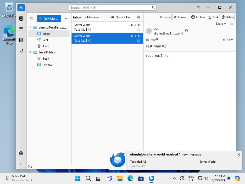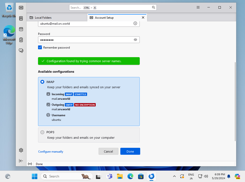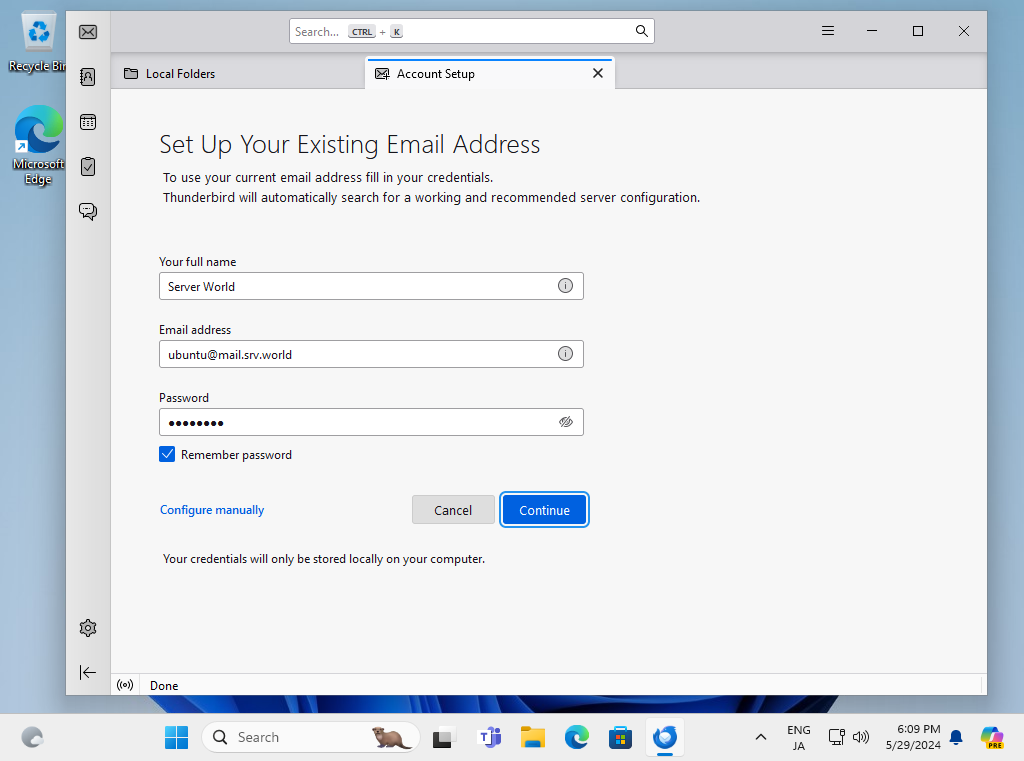 अपने पीसी पर अपने मेल क्लाइंट के लिए कॉन्फ़िगर करें। यह उदाहरण Mozilla Thunderbird के साथ दिखता है।