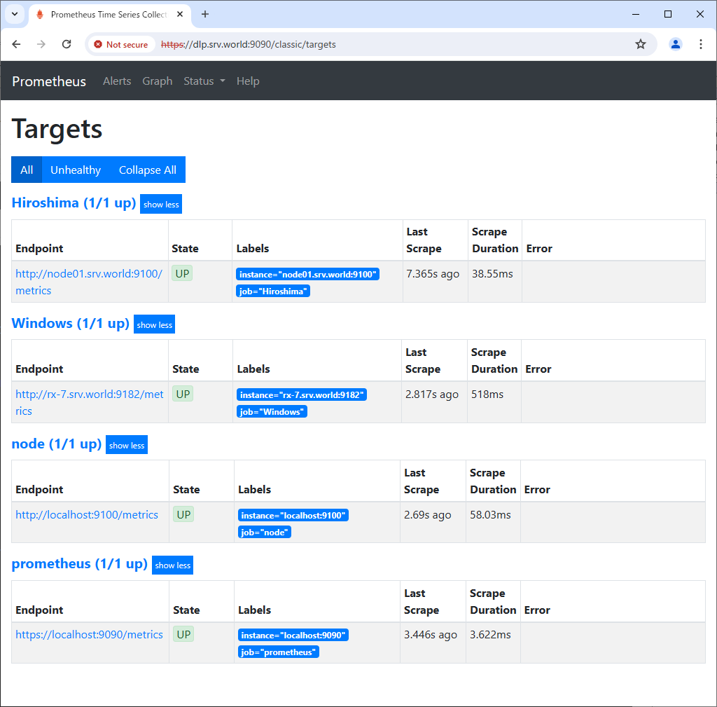 - targets: ['localhost:9100', 'rx-7.srv.world:9182']