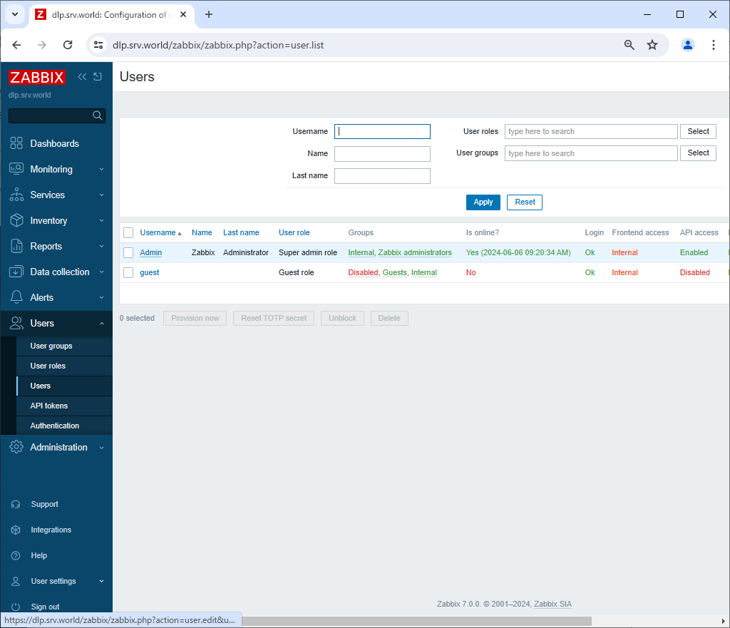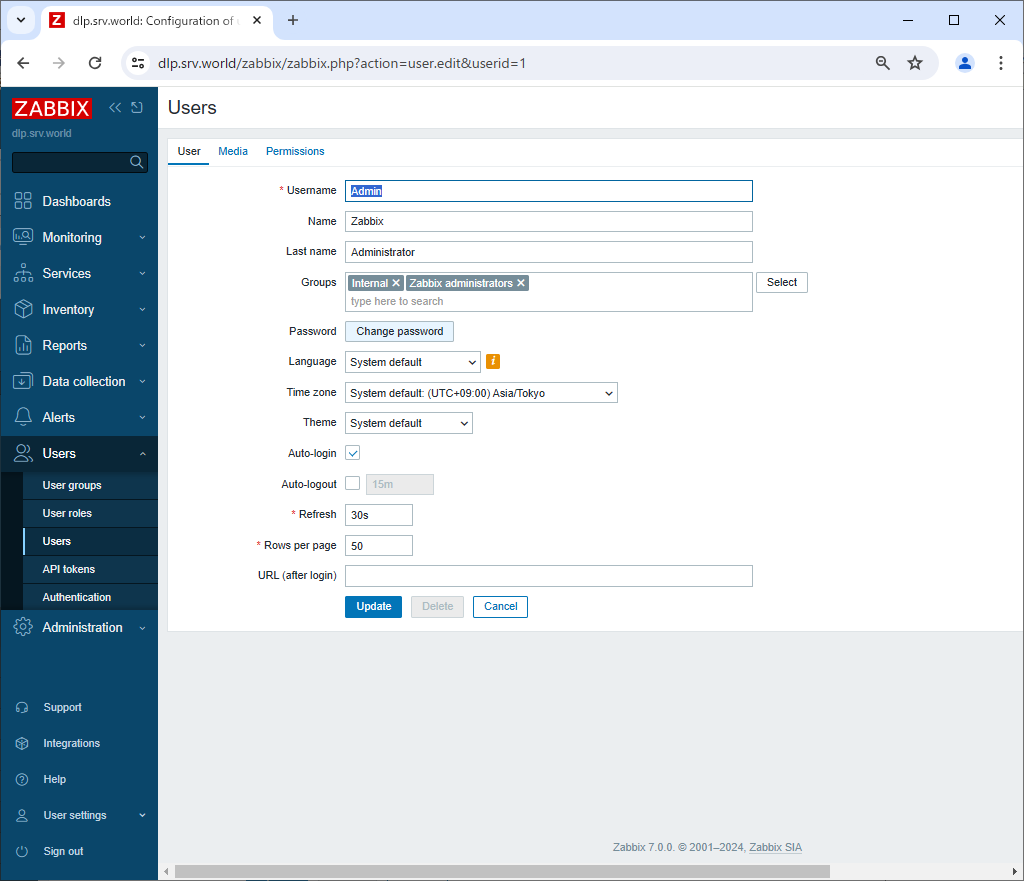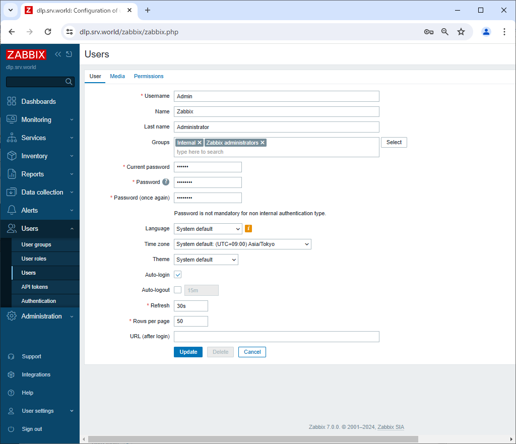Zabbix 7.0 : एडमिन पासवर्ड बदलें2024/06/06 |