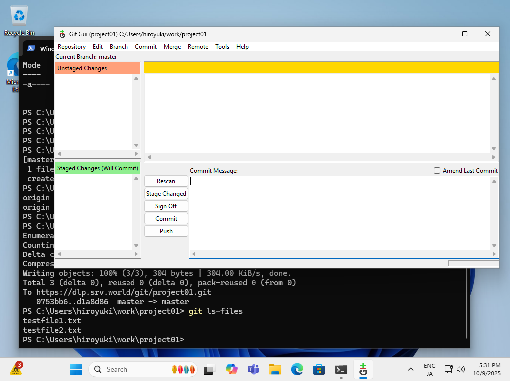 PS C:\Users\hiroyuki\work\project01> git config --global user.email "debian@win01.srv.world"