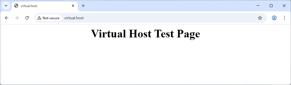 <html> <body> <h1 style="width: 100%; font-size: 40px; text-align: center;"> Virtual Host Test Page </h1> </body> </html> |