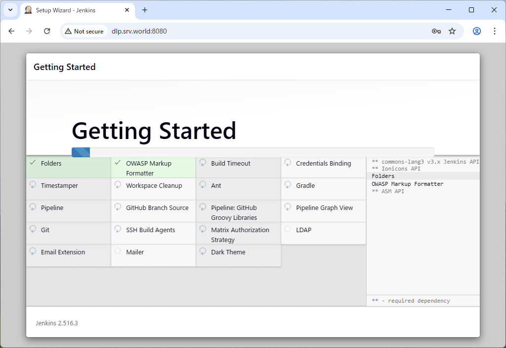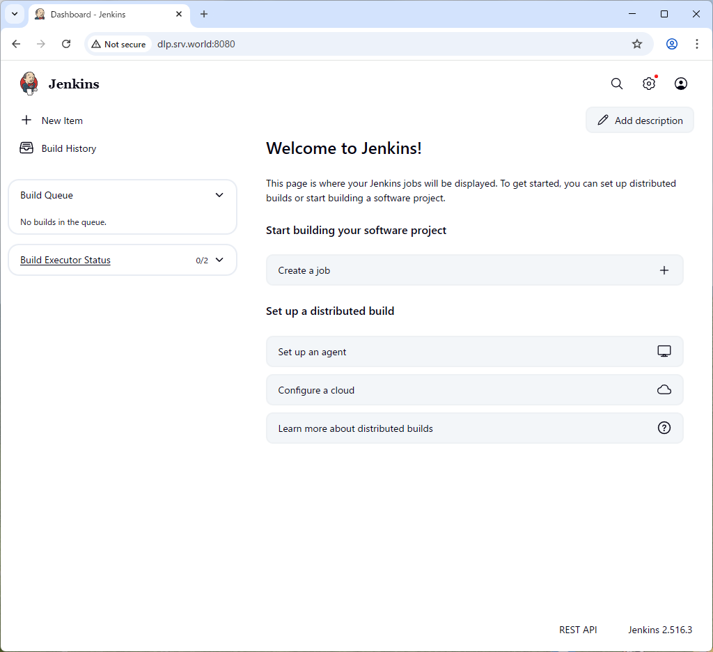 # Jenkins 公式リポジトリ設定 root@dlp:~# wget https://pkg.jenkins.io/debian-stable/jenkins.io-2023.key -O /etc/apt/keyrings/jenkins-keyring.asc root@dlp:~# echo deb [signed-by=/etc/apt/keyrings/jenkins-keyring.asc] https://pkg.jenkins.io/debian-stable binary/ | tee /etc/apt/sources.list.d/jenkins.list