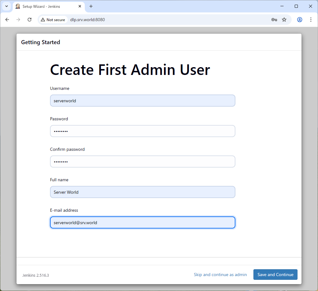 | [7] | Jenkins のアクセス先 URL を変更したい場合は変更します。当例では既定値で進めます。 |