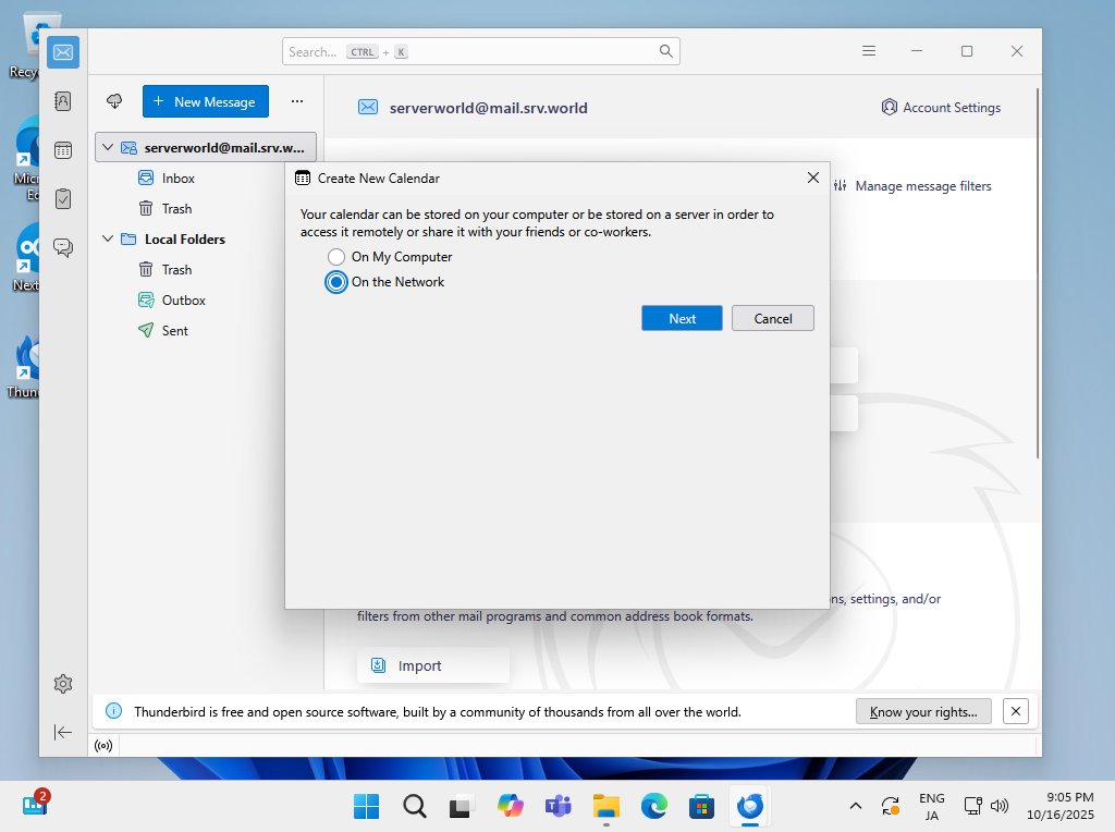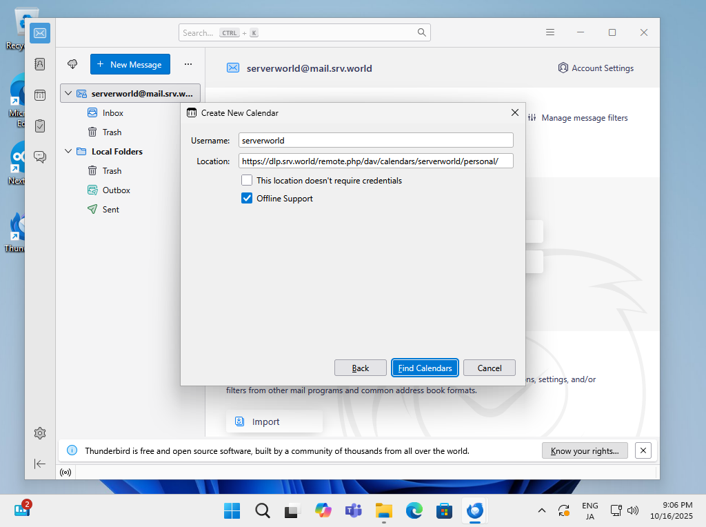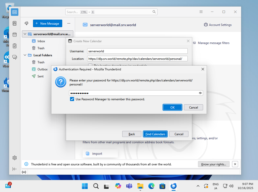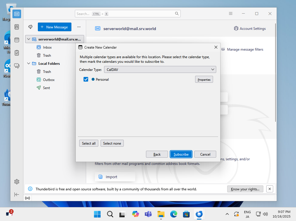 NextCloud 上のカレンダーとクライアントコンピューター上のカレンダーアプリを同期して利用できるよう設定します。