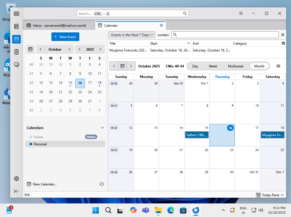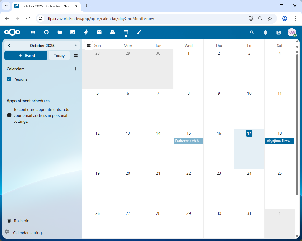 NextCloud : カレンダーを同期する2025/10/17 |