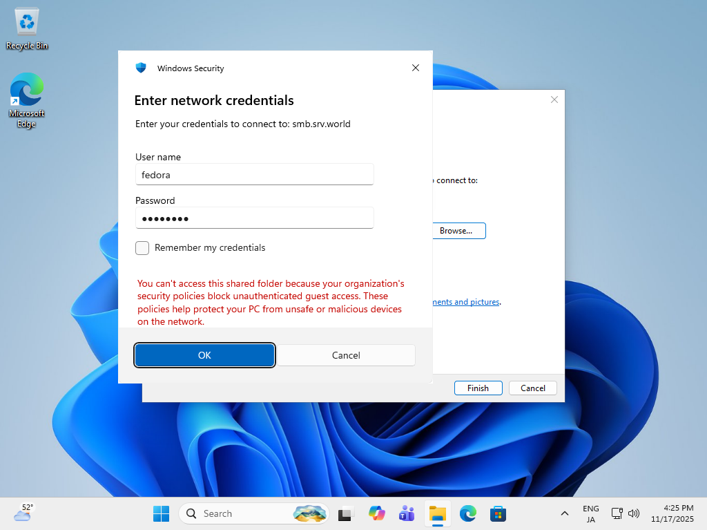 Samba : クライアントからの共有アクセス (Fedora)2025/11/18 |