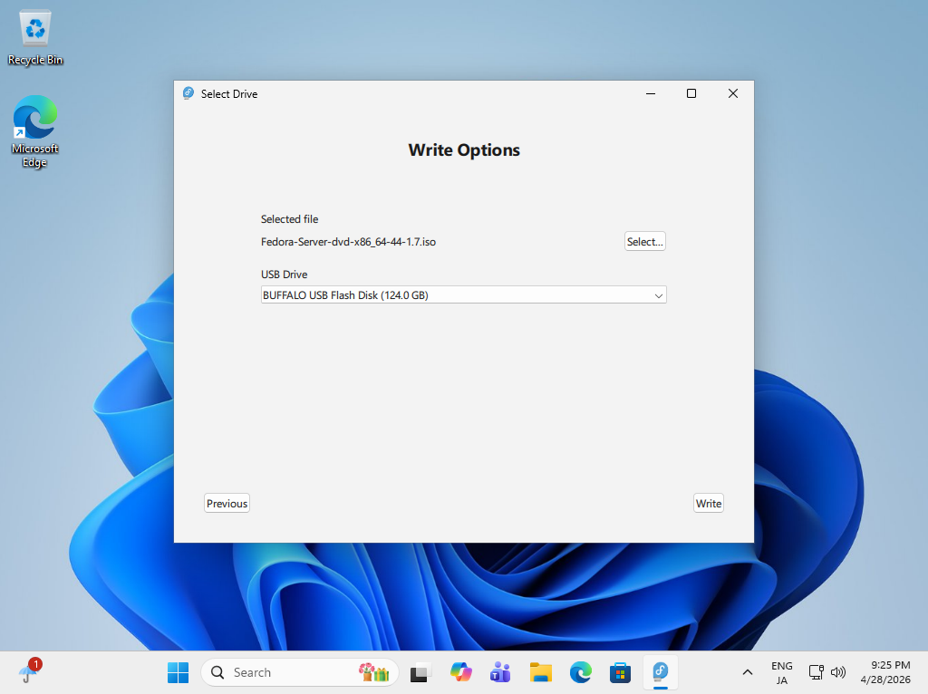 Fedora 44 インストール メディア 作成 (USB メモリ) |