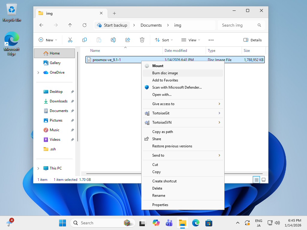 Proxmox VE 9 : インストール メディア 作成 (DVD)