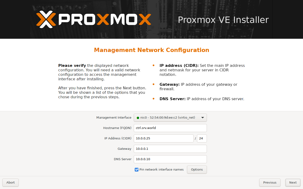 | [6] | ホスト名や IP アドレス等々を設定して、次へ進みます。 |