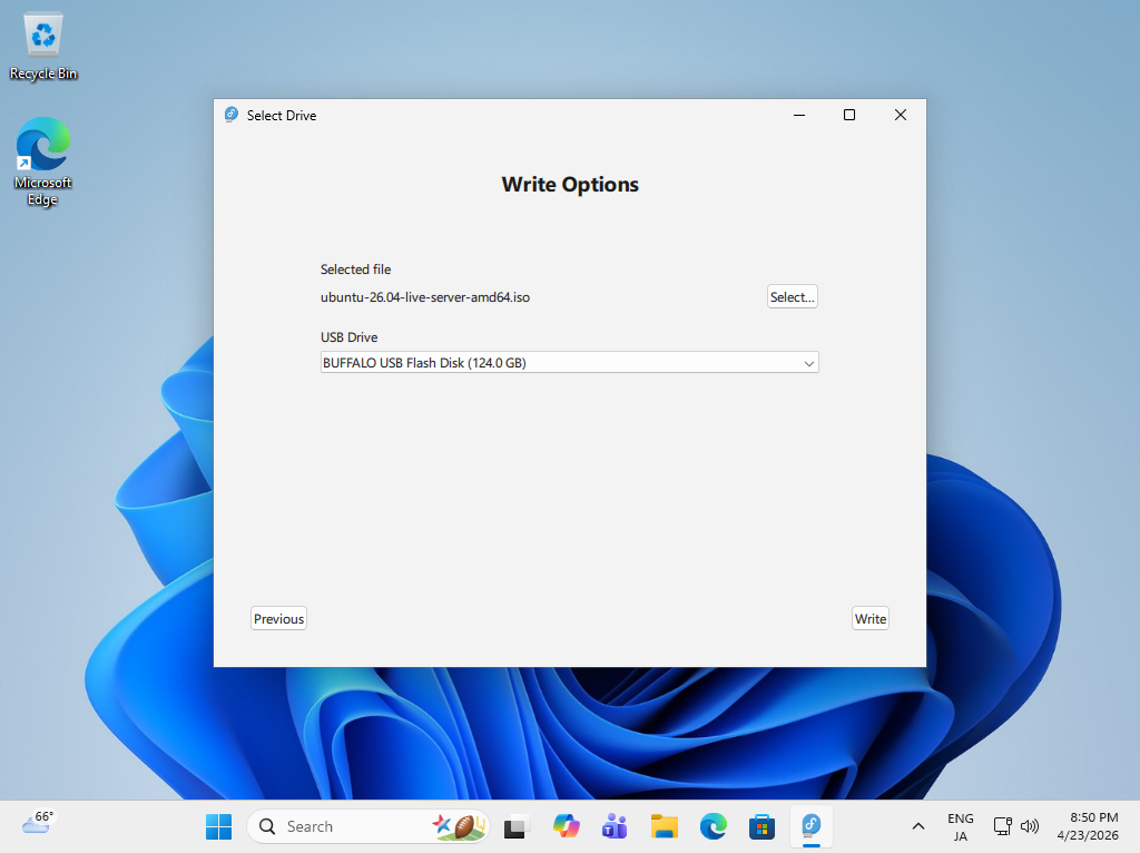 Ubuntu 26.04 インストール メディア 作成 (USB メモリ) |
