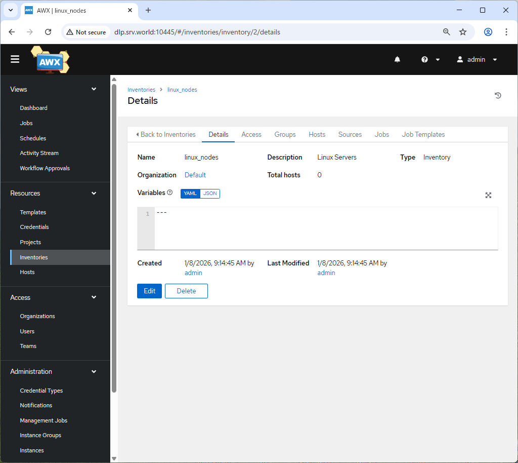 Ansible : AWX インベントリー追加2026/01/08 |