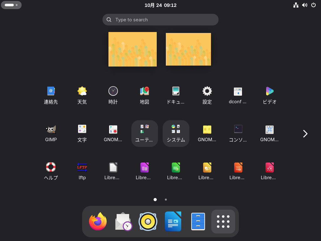 | [6] | ログインすると、GNOME デスクトップ が日本語になります。 |