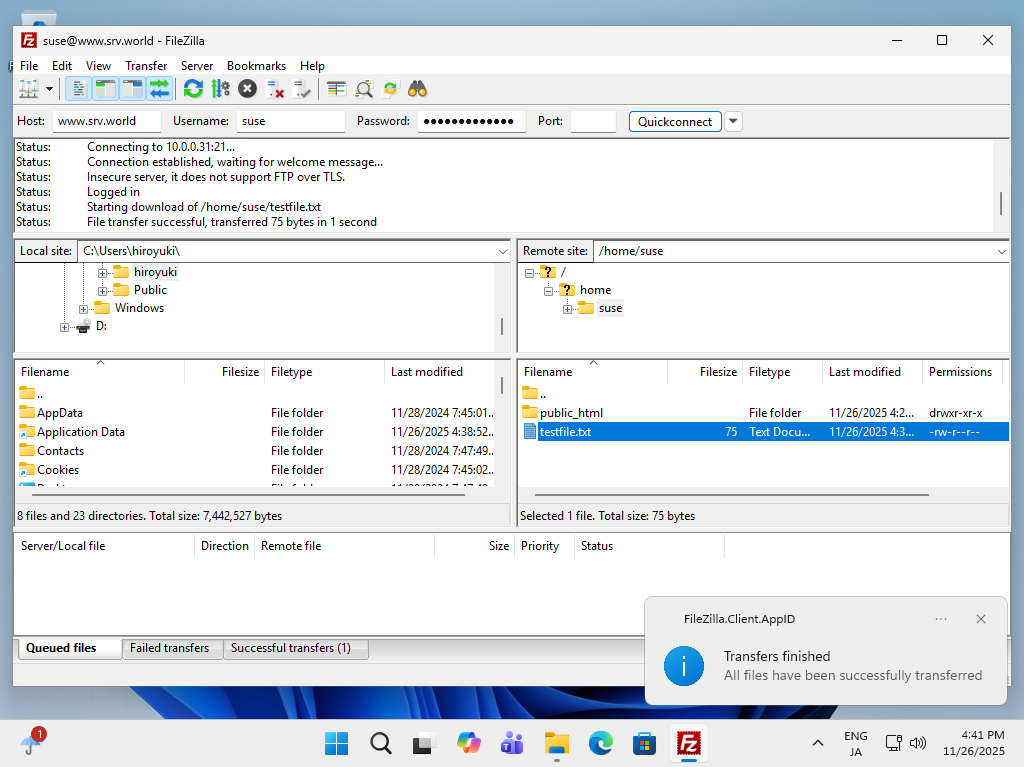 FTP サーバー : FTP クライアント (Windows)2025/11/27 |