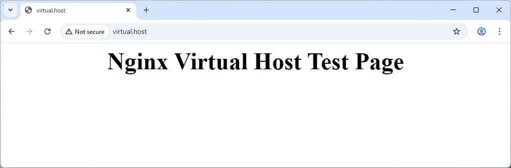 vi /srv/www/virtual.host/index.html <html> <body> <h1 style="width: 100%; font-size: 48px; text-align: center;"> Nginx Virtual Host Test Page </h1> </body> </html> |
