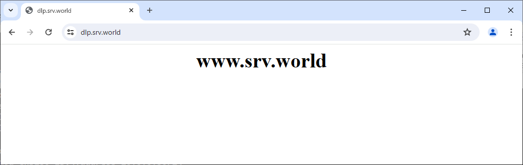 | [4] | ローカルネットワーク内の DNS の設定や、必要であればルーターの設定を変更して、Squid のサーバーで HTTP/HTTPS アクセスを受け付けるように設定変更します。変更後、クライアントコンピューター等から Web ブラウザーで Squid のサーバーへアクセスし、以下のように設定したバックエンドサーバーが応答することを確認しておきます。 |